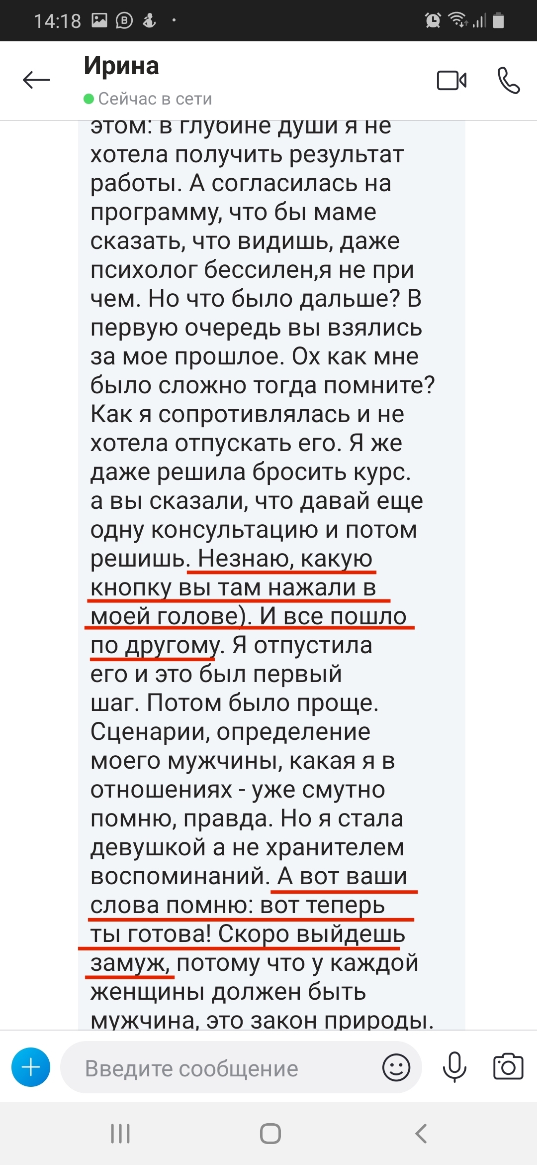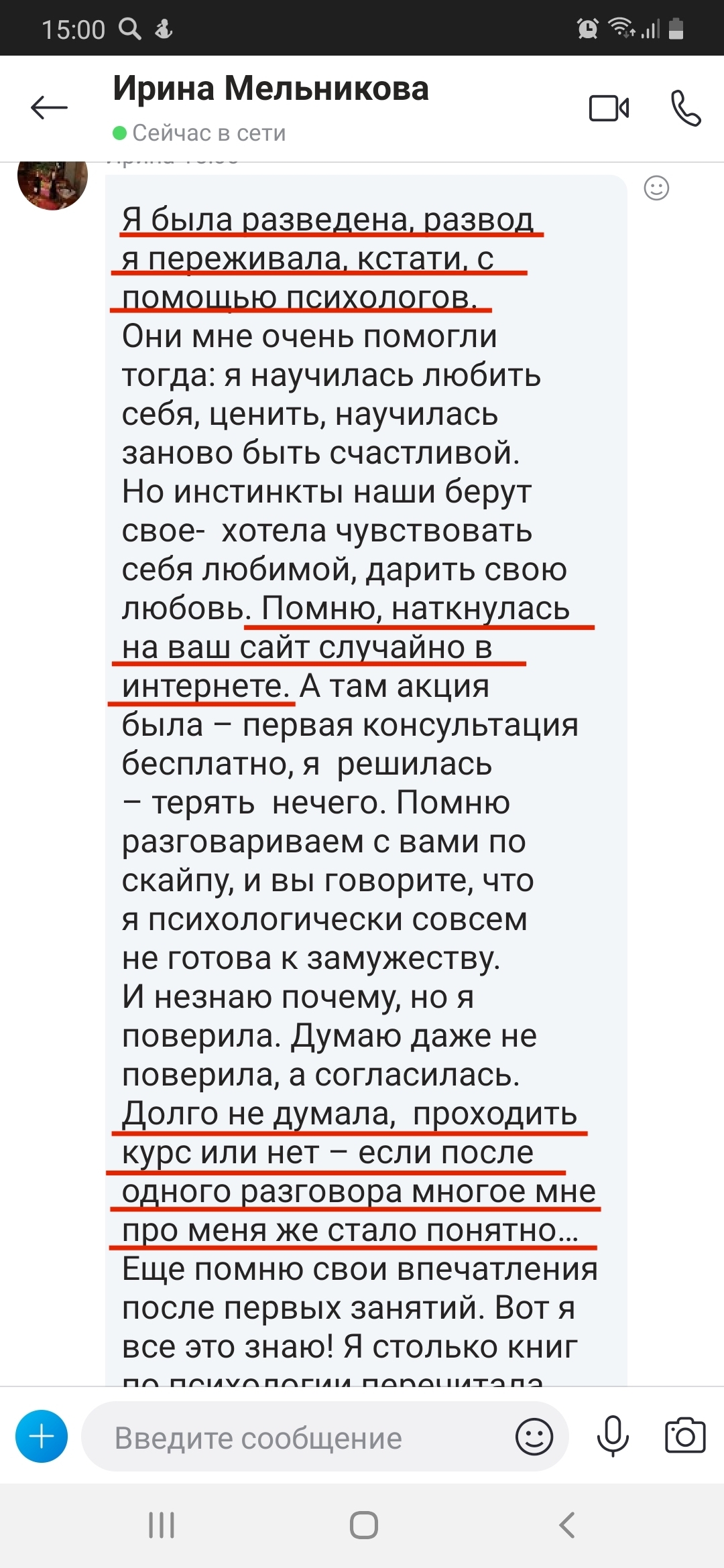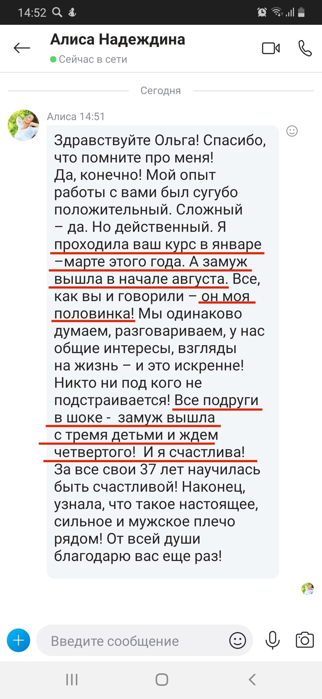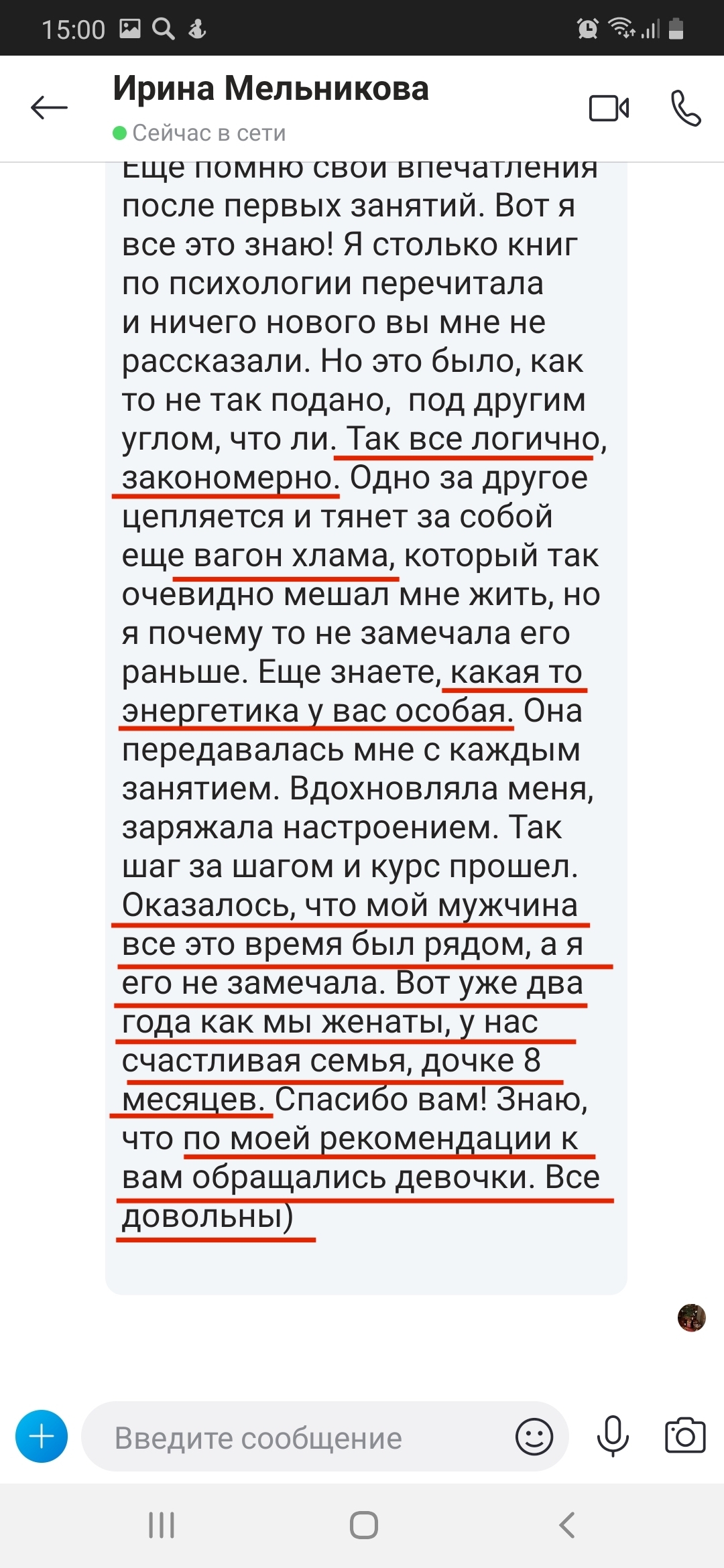 На самом деле именно 8 лет неудачного брака сделали меня специалистом. Диплом это фигня, психологов тысячами выпускают. А я теперь знаю все, через что проходит женщина. И как из этих ситуаций выходить.