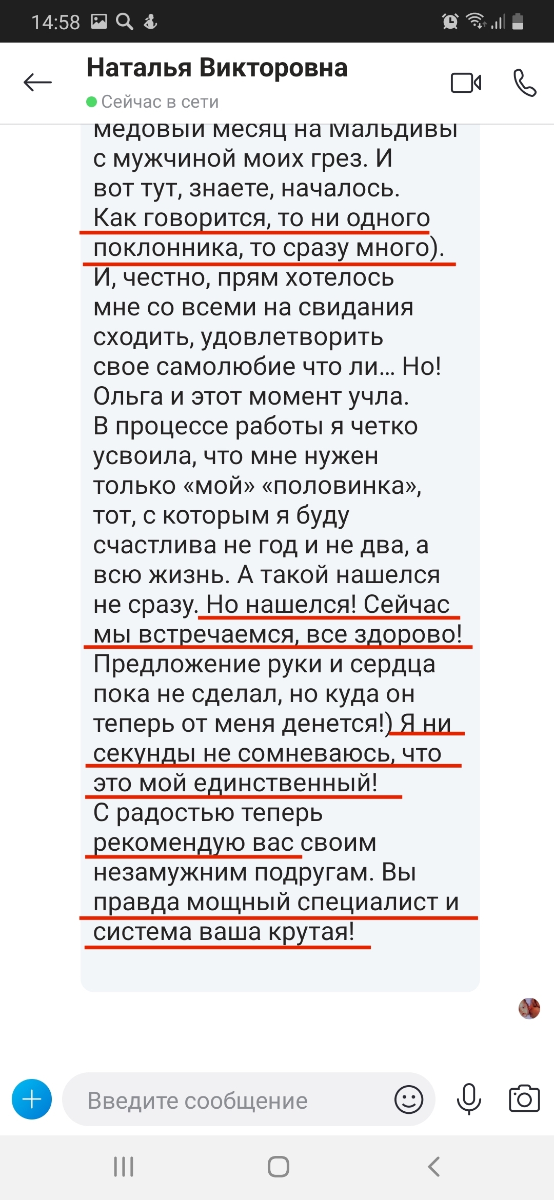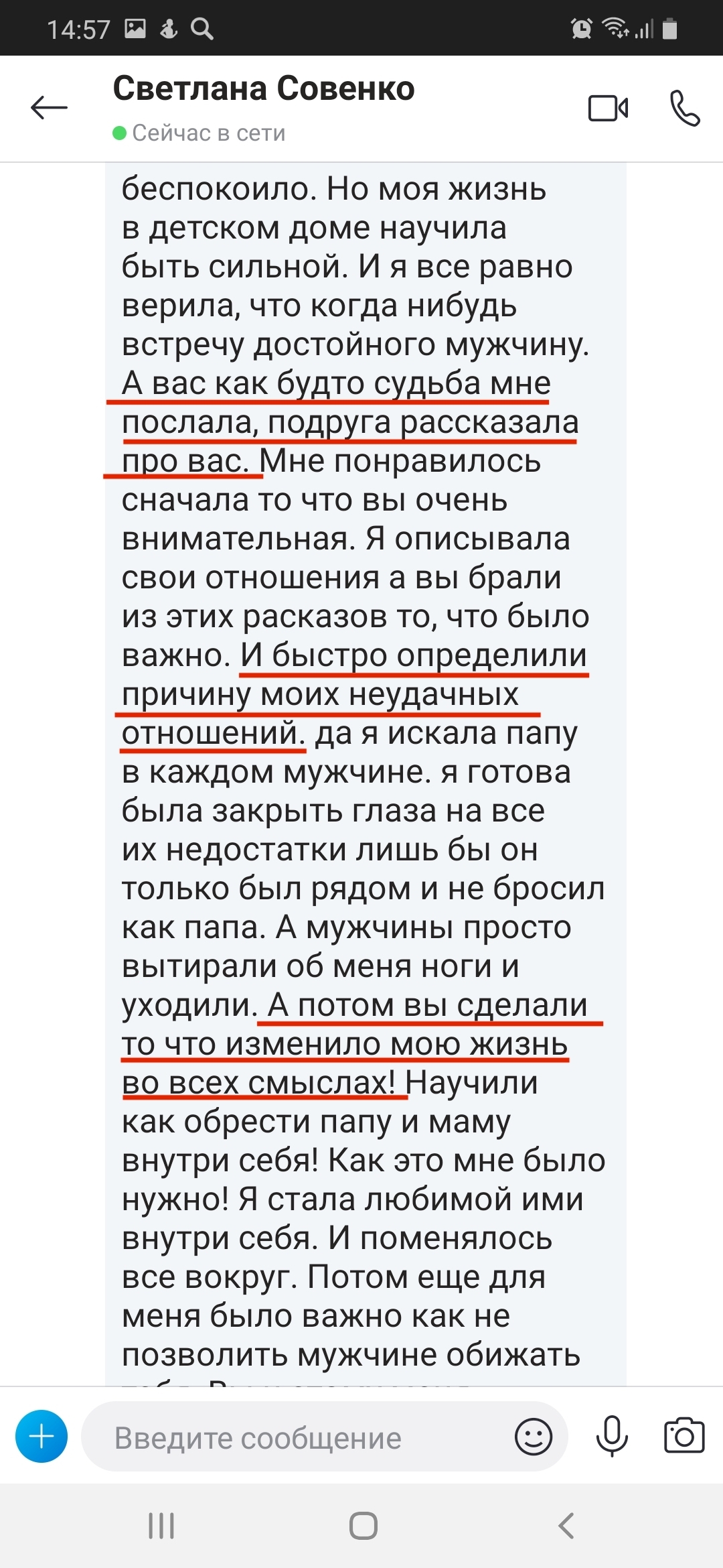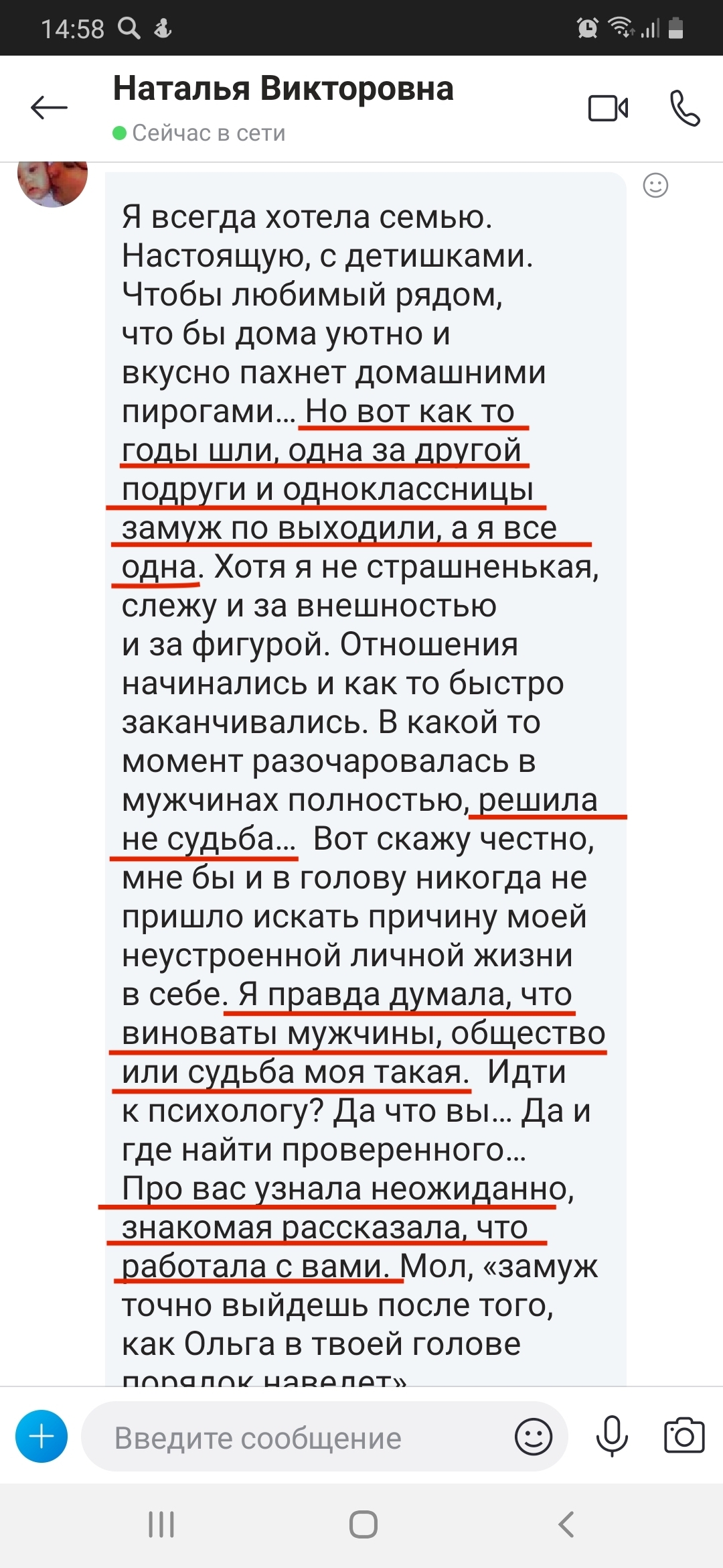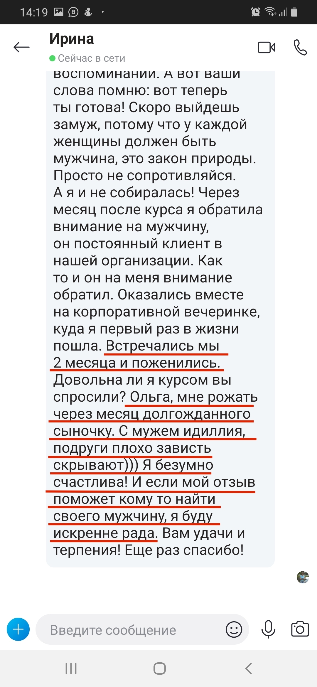 На самом деле именно 8 лет неудачного брака сделали меня специалистом. Диплом это фигня, психологов тысячами выпускают. А я теперь знаю все, через что проходит женщина. И как из этих ситуаций выходить.